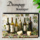 This elegant still life captures the timeless romance of wine culture with exquisite attention to detail. The composition artfully arranges aged wine bottles with their weathered labels against a softly textured backdrop, complemented by fresh vine leaves and artisanal cheeses. The piece demonstrates masterful technique in capturing the translucent qualities of the glass bottles and the subtle play of light across their surfaces.