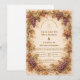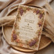A romantic vineyard-inspired design framed with rich grape clusters and autumn-toned leaves, capturing the warmth and elegance of a Tuscan countryside celebration. The intricate botanical details and soft vintage palette create a refined yet inviting atmosphere, perfect for wine lovers and destination-style weddings. With its timeless composition and old-world charm, this design brings a sense of intimacy, abundance, and quiet luxury to your special day.