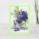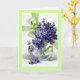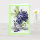 Vintage postcard illustration still life of violets, with a big green bow in the background, sitting in a glass vase. This card is excellent for special occasions, birthdays, Valentine's Day, Easter, and Mother's Day. The light green background can be changed to another color and the inside is blank. A matching stamp and sticker are each available for purchase.