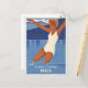Anyone would love to receive this vintage Italian travel postcard featuring a retro illustration of a woman swimming in Lake Como, Italy!