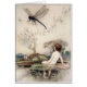 A vintage illustration from the book "Water Babies: A Fairy Tale for a Land Baby" featuring a young child sitting on a lily pad in a pond as dragonflies zoom overhead. The artist, Warwick Goble (1862-1943), was an English illustrator who was influenced by Japanese watercolor techniques. He is most famous for his children’s books and fairy book illustrations. Card is blank inside for your own message.