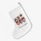 Perfect! Exactly what I ordered! I uploaded a picture of my blue chow, and the screen print was incredible. the back side of the stocking was the red and black checkered print. my puppy's name was also printed on the cuff of the stocking. PERFECT! Highly recommend this product! My puppy's name was screen printed onto the cuff of the stocking, the font was perfect!