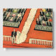 Vintage illustration love and romance art deco design featuring a couple getting married in a church with the guests seated for the marriage ceremony. The man is wearing a formal tuxedo and the woman is wearing a traditional white gown with a long veil that runs down the aisle. The bridal gown reminds us of the opulence of a Princess at a royal wedding. A silly, funny and humorous design that pokes fun of the grandeur of weddings.