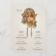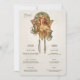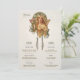 Enhance your wedding reception with this Art Nouveau-inspired menu and drinks card, featuring a beautifully illustrated vintage lady adorned with flowers and flowing details. The elegant design brings a touch of classic sophistication with muted greens, warm yellows, and soft blush tones. The front side details the cuisine options, including appetizers, main course, and desserts, while the reverse lists a selection of cocktails, beer, and wine. Perfect for a vintage-themed wedding, this card combines old-world charm with artistic beauty, creating a memorable keepsake for your guests.