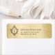 An elegant design with a vintage air, with a wedding monogram from the 2 initials of the bride and groom, in a vintage crest, before the name and address. The crest and the text are dark brown, the background is simulates parchment (old paper).
