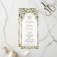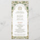This elegant wedding program captures the timeless beauty of Art Nouveau with its luxurious floral detailing. Featuring an intricate border of gold and white blossoms with lush green leaves, the design frames the program details in a sophisticated and graceful manner. The front showcases the wedding ceremony timeline, while the back lists the wedding party members in a matching ornate style. With its soft ivory background complemented by rich shades of forest green, sage, and shimmering gold, this program is perfect for a nature-inspired or vintage wedding. The refined monogram and floral motifs add an extra layer of charm, making this a beautiful keepsake for your special day.