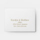 Custom A2 wedding response envelopes feature formal style antique gold reply-to address text with scroll and white background.
