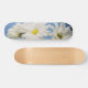 A vintage styled photograph of white daisy flowers is featured on this custom skateboard deck.