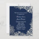 Yes, you can print on the back of your invitation for free! Most designs already have a corresponding design on the back that can be personalized using the Design Tool and going to Layers. This is a great way to communicate more information or further personalize your Vintage White Lace Pattern Navy Blue Wedding Invitation. The option is really up to you.