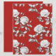 This beautiful scrapbook paper sheet features vintage-inspired soft white roses and trailing leaves on a rich crimson red backdrop. The classic floral motif is both timeless and bold—romantic with a hint of drama. The back's solid crimson red color complements the front design. This lovely paper will add a beautiful touch to any scrapbook or craft project.