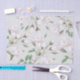 This tissue paper features a pattern of vintage white roses on a pale gray background.