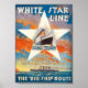 A vintage travel poster from the White Star Line advertising ocean liner travel to the USA, Canada, South Africa, Australia and New Zealand via the "Big Ship" route. Posters come in a variety of sizes and paper finishes. (Not all images will fit on all poster sizes.)