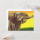 Vintage illustration wild animal design from an old fruit crate label featuring an African elephant with large ears and ivory tusks. Beautiful glowing sunset in the distance.