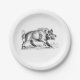 Vintage Wild Boar Drawing BW #2 Paper Plates