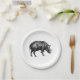 Vintage Wild Boar Drawing BW Paper Plates