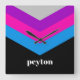 A bold, graphic design with colorful shades of black, purple, pink and blue -- with a fun color block to add your name or any text. The stripe pattern is a trendy throwback to windbreakers from the 80s and 90s with punches of color.