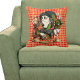 Stylish throw pillow design features tinted versions of the original vintage illustrations of the Mad Hatter, the White Rabbit, and Queen Alice, from Alice in Wonderland & Through the Looking Glass, on black and harlequin pattern background.