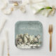 Whimsical vintage look birthday party paper plates for an Alice in Wonderland style tea party, featuring original book tea party illustration of Alice, the Mad Hatter and White Rabbit on a distressed blue vintage floral & handwriting background. Please see the rest of the collection for matching party supplies and invitations