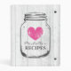 Personalized white oak wood grain vintage mason jar kitchen recipe binder book. Custom mini kitchen cookbook with pretty faded pink heart and personalizable name or quote. Cute personalized baking / cooking gift idea for women; ie mom, mother, aunt, wife, sister, grandma, bride, bridesmaids, girl, bride etc. Rustic country chic design with distressed love symbol. Elegant typography for custom name. Shabby chic gift idea for romantic bridal shower, barn wedding, engagement, anniversary, dinner party, Birthday. Old wooden panel background image with beautiful graphics. Small size avery binders. Also a nice accessory for food canning and fermenting enthusiasts. Made with love!