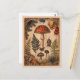 Vintage woodland postcard featuring a Victorian-style natural history illustration: a grand red spotted toadstool surrounded by smaller mushrooms, fern fronds, berries, seed pods, and beetles on an antique parchment ground with ornate corner flourishes and a warm ochre border. The back includes the short sentiment “For fellow seekers of tiny marvels—may curiosity lead you someplace lovely.” (fully editable) or can be left blank. Perfect for fall correspondence, pen-pals, cottagecore décor, or framing as a mini art print.