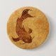 This vintage looking design features a graphic of a swimming koi fish. The fish's head appears at the bottom of the design with its body curling up towards the tail at the top. Rough textures and natural brown and yellow colors gives the pattern an aged look. This beautiful design is a unique representation of this wonderful aquatic creature