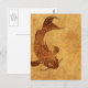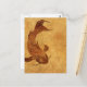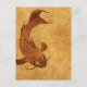 This vintage looking design features a graphic of a swimming koi fish. The fish's head appears at the bottom of the design with its body curling up towards the tail at the top. Rough textures and natural brown and yellow colors gives the pattern an aged look. This beautiful design is a unique representation of this wonderful aquatic creature