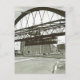 Vintage retro black and white photograph of the floating train (Schwebebahn) in Wuppertal, Germany. Photo was taken in the 1950s.