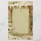 Custom stationery featuring a vintage graphic illustration from Hungary 1901 .Snow covered pine tree and a birch . A yard sign in the center for your message .Courtesy of takacsi75