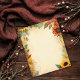 Aged sheet of paper with yellow and orange sunflowers and green leaves. The same design is on the back of the paper. This beautiful paper works well as a scrapbook background and can be added to junk journals, collages, art journals and other paper crafts.