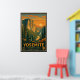 Designed with bold shapes, flat colors, and a rich retro palette of forest green, mustard, and burnt orange, this poster recreates the iconic look of vintage park advertisements. The subtle grain texture and clean composition add an authentic, handcrafted feel, making it a standout piece for any interior.
