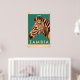 Unique Antique Style Aviation Travel poster from Zambia featuring a black and white Zebra head painting on an deep Aqua blue background