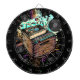 A vibrant and whimsical graphic design featuring a crate full of vinyl records, emerging from the trunk of a tree. The tree’s branches stretch out, adorned with lush green leaves, intertwining with the flowing design of musical elements. The crate, overflowing with colorful vinyl records, sits at the base of the tree, surrounded by playful music notes, guitars, and other musical instruments that seem to sprout from the leaves. The scene bursts with color, blending rich hues of blue, yellow, and purple in a harmonious symphony of sound and nature. Musical elements seem to flow organically, blending the worlds of nature and music into a lively, dynamic design.