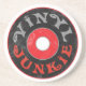 This fun coaster reads "vinyl junkie" in a retro font. Perfect for record and album collectors.