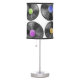 The lamp looks exactly like the picture, bright and colorful. The lamp shade is plastic not what I expected, however I love it! The printing is clear and the name can easily be read.