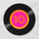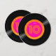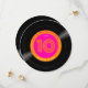 Add a disco touch to your wedding tables with this hot pink and orange groovy vinyl record style round paper Table Number. This fun custom design features a vinyl record image. The label displays your table number in a striped retro disco font. The label border features your names and wedding date. 70s 80s disco groovy style. A bright accent to add to your disco wedding decor.