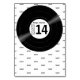 This wedding table number features a retro vinyl record on a background that resembles a record sleeve style. It is personalized with your names and your initials on both the record label and as part of the background pattern.