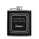 Vinyl wrapped flask is shown in a solid color of black with a sample father of the groom name.