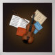 This poster shows a scene in which a viola and bow lie on top of a pile of music books that can be customized with the names of your favorite composers and the titles of your favorite musical pieces, suites, etc.
