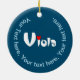 Lightweight, smooth, pure white ornament with nice sheen. Perfect size to be seen from across the room ... and to attract closer inspection! Price was great for ordering enough for the whole family! Clear, bold black design just as requested. Matches the order exactly. Just so nice!