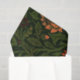 This design features a traditional pattern designed by British artist and designer William Morris (1834–1896). It shows green plants and bright flowers, especially columbines and violets.