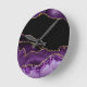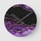 Violet Black Marble Agate Dark Glamor Golden Round Clock