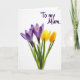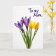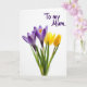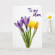 Designed with a fresh spring bouquet on a bright white background, the card places violet blossoms in the center, their petals open around small golden anthers. Nearby, sunny yellow buds stay closed, leaning toward the purple flowers as if sharing a quiet, affectionate moment ❤️. Green stems and a few leaves weave through the arrangement, balancing the purples and yellows with a natural, calming contrast. Soft, diffused light falls across the petals, bringing out gentle texture and subtle shadows without harsh edges. The words “To my Mum” sit over the open space beside the bouquet in purple lettering, easy to read against the white. The text feels like it’s tucked close to the flowers, like a note placed near a gift meant for someone special 👩. A few violet blooms overlap slightly, while the yellow buds cluster just off-center with green stems angled upward.