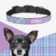 Violet blue Plaid Pattern Custom name Elegant Pet Collar