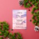 Memorial luncheon invitation printed against a photo of a dawn sky in beautiful soft hues of violet and peachy pink. Add the name and years living of your loved one, and the invitation text in silver foil.