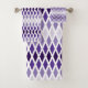 Diamond sizes - bath towel matches shower curtain, washcloth matches toothbrush/soap dispenser set.