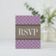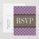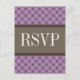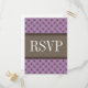 Trendy and chic Fancy Lattice Wedding RSVP Postcard featuring a stylish circle and diamond studded pattern over a vibrant purple background with a broad two-toned brown border. This elegant RSVP card is perfect for a modern wedding. Easy to customize, simply add your wedding details in the text fields provided. Click "Customize It" to find more personalization options.
