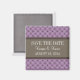 Trendy and chic Fancy Lattice Save the Date Magnet featuring a stylish circle and diamond studded pattern over a vibrant purple background with a broad two-toned brown border. This elegant save the date magnet is perfect for announcing your modern wedding. Easy to customize, simply add your wedding details in the text fields provided. Click "Customize It" to find more personalization options.