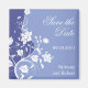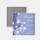 A truly lovely save-the-date magnet. A white flower stem reaches the height of this magnet over a rich blue-violet background. Flowers reach out to frame your customized information. Available in alternate colors with matching products.