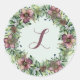 Violet Floral Wreath - Monogram Classic Round Sticker