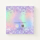 A trendy holographic background with unicorn colors and rainbow colors in pink, purple, mint green. Decorated with violet, lavender colored confetti. Personalize and add your name, title, text